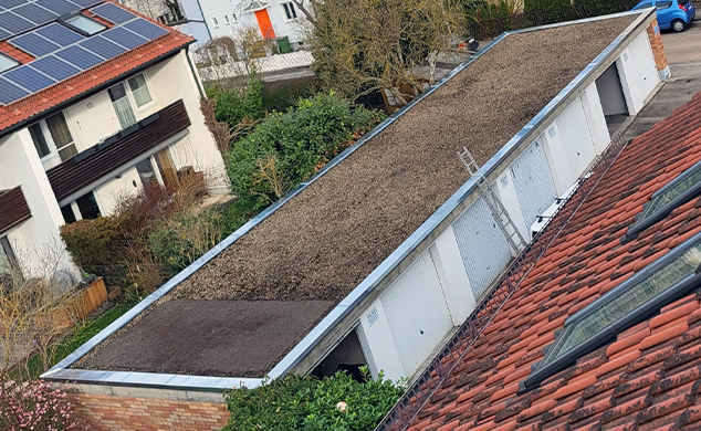 Wir haben einen Garagenblock mit einer Dachbegrünung ausgestattet. Diese verbessert die Dämmung, ist pflegeleicht - und natürlich gut für die Umwelt.